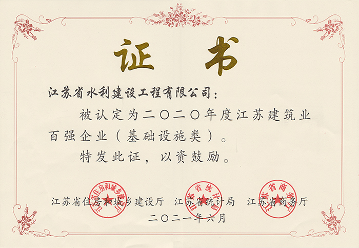 • 江蘇建筑業(yè)百強企業(yè)2022年度證書